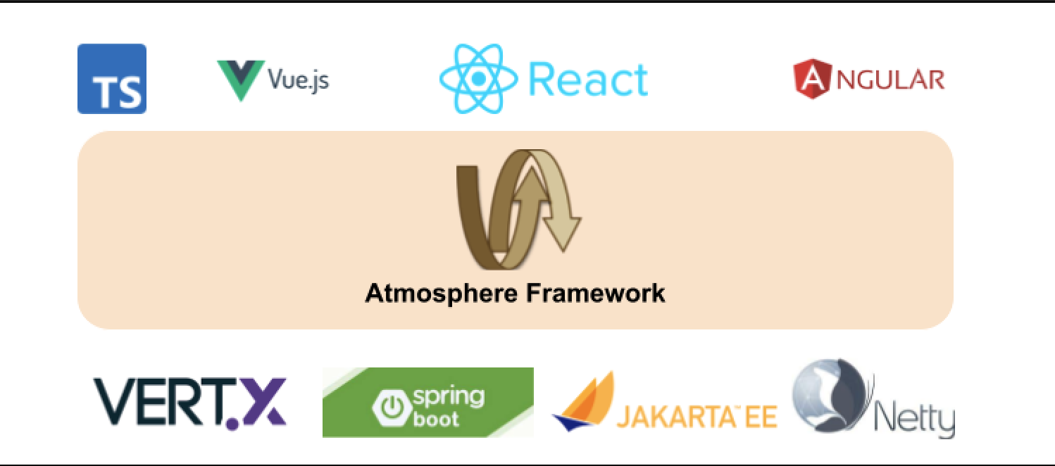 Atmosphere transparently supports WebSockets, Server Sent Events (SSE), Long-Polling, HTTP Streaming (Forever frame) and JSONP.The Atmosphere Framework Stack consists of: