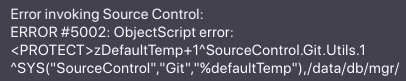 When using the Git source control plugin with a user of limited privileges, the source control menu fails to load with a 5002 Protect Error on the DefaultTemp() method