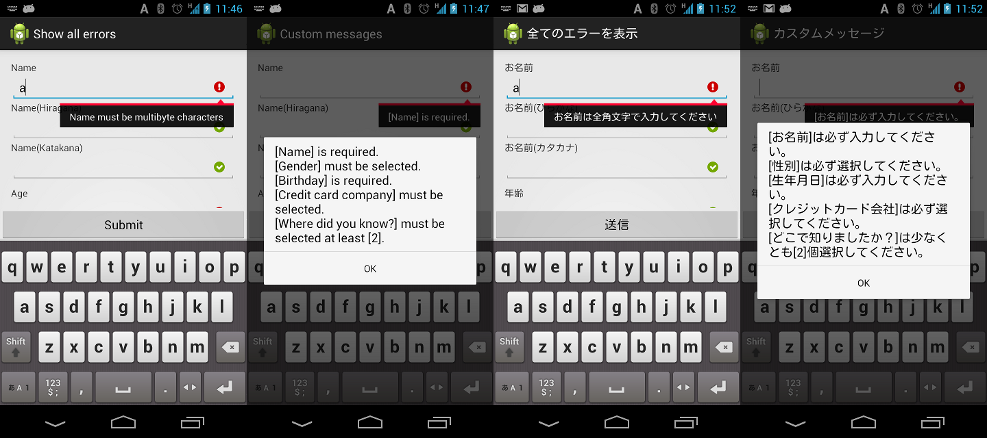 AndroidFormEnhancer is a library for implementing input forms easily in the Android application. You can use annotations to describe the definitions of the input form briefly, reduce codes that handle data of the screens in the Activities and Fragments.
