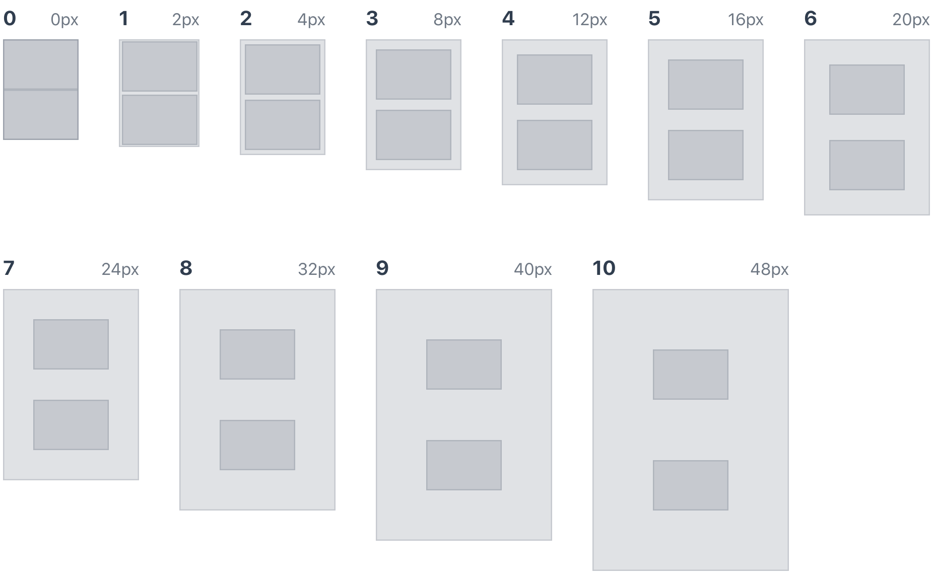 Vue Layout System uses a finite set of spacing scales for all spacing needs, such as padding around the contents and gaps between contents. This is a vital foundation for consistent and precise control of the spacing.