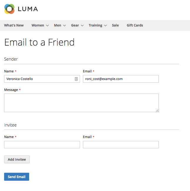 This is a stub feature to implement "email to a friend" functionality for products on Storefront