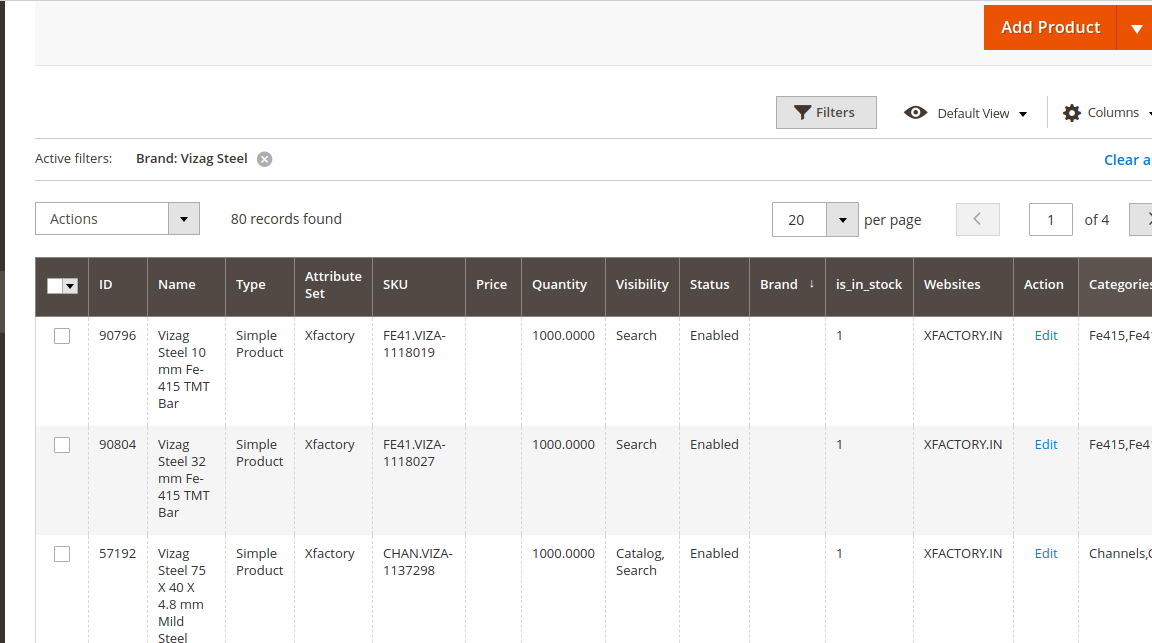 - Navigate to admin catalog product grid