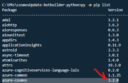 setup.pyinlibraries\botbuilder-azureto useazure-cosmosv3.2.0.Testing