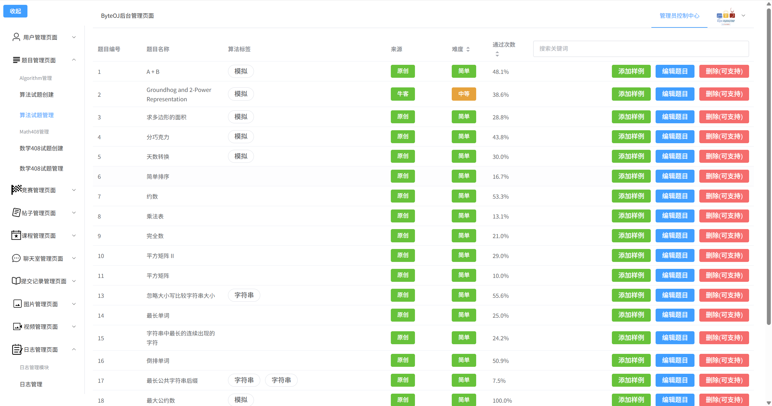 - 管理员可以对每道题目的测试样例进行修改
