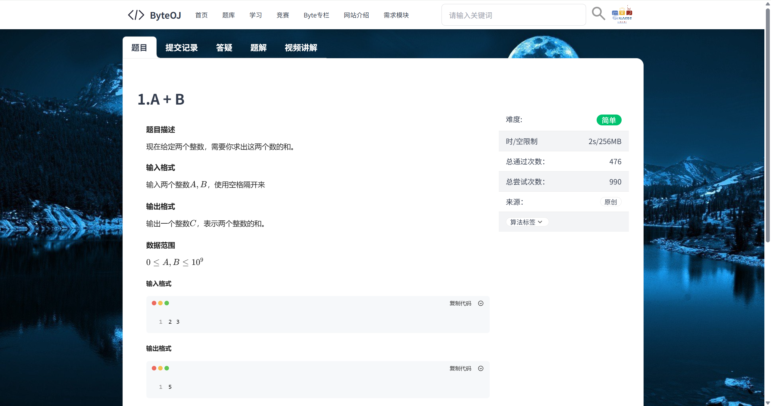 如不希望看下面这么麻烦的纯文字渲染,也可以直接访问网址查看ByteOJ需求模块介绍,其实也差不多。