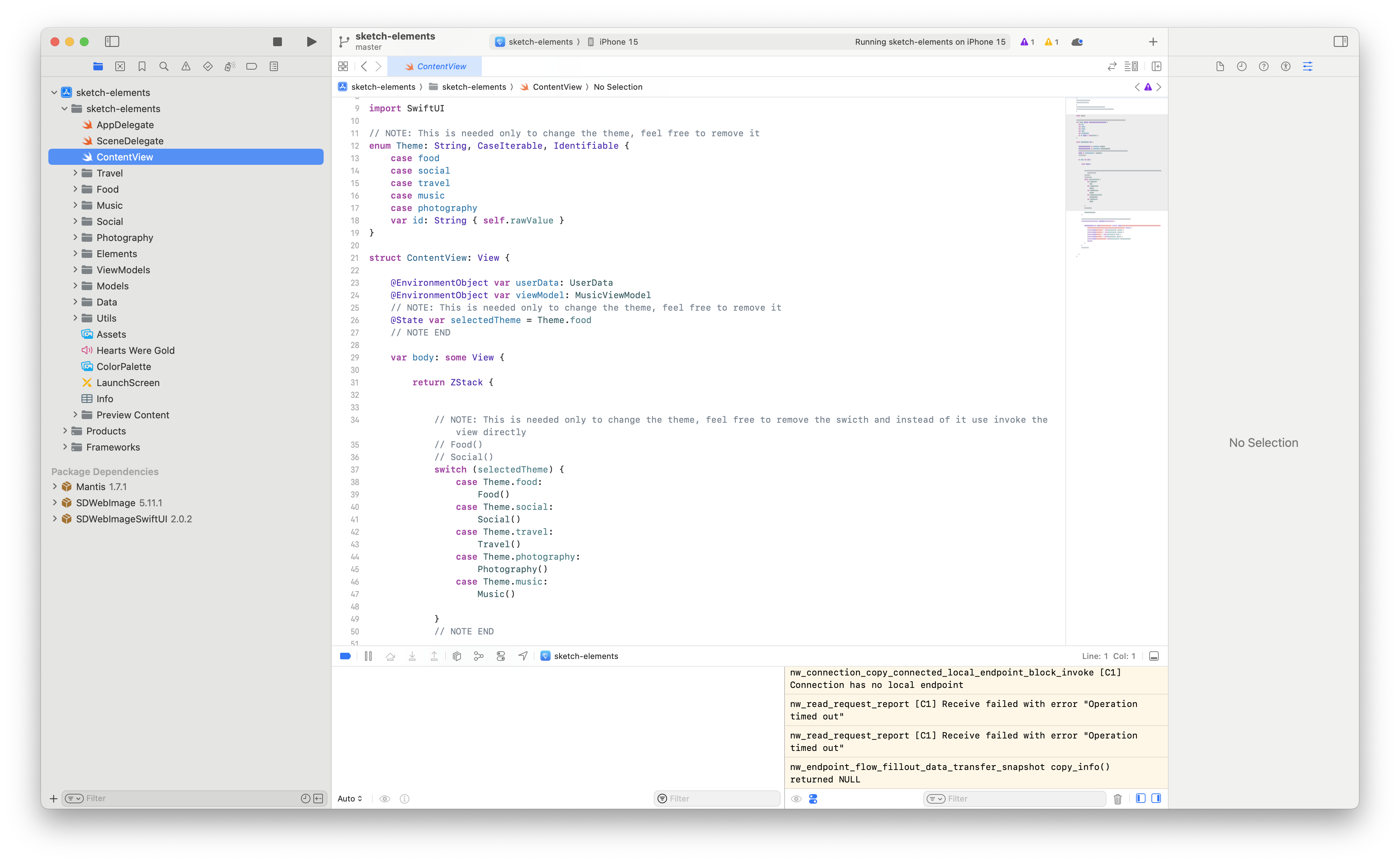The best way to use this project is to create your custom folder in the project root e.g. MyApp With default user story. I will copy past here Travel.swift content to simulate it. Then in ContentView.swift delete or comment out all the unnecessary lines you don’t want to use. Here is minimal example.
