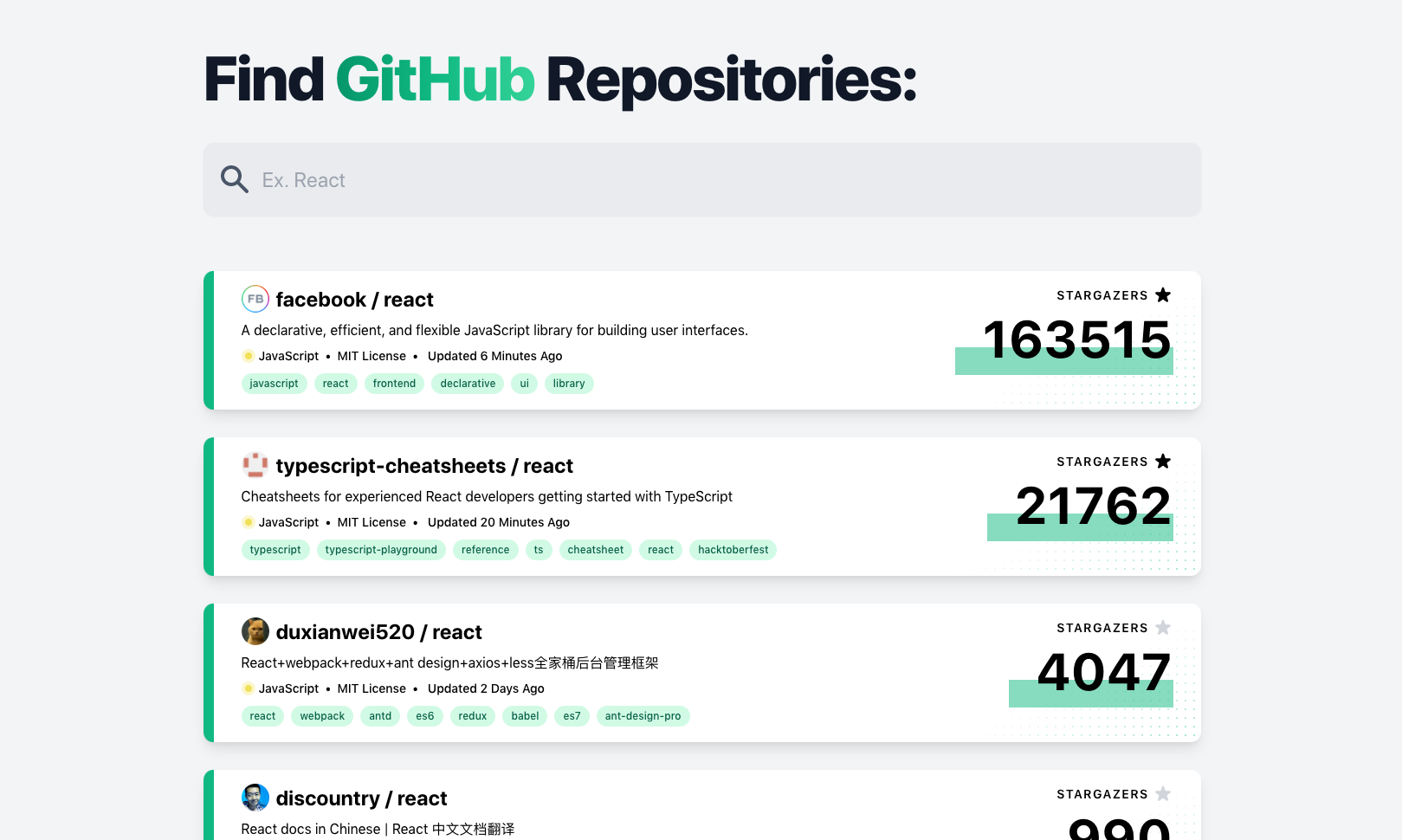 This GitHub search client was scaffolded via Vue CLI. Simply type a query into the search bar to retrieve a list of relevant repositories.