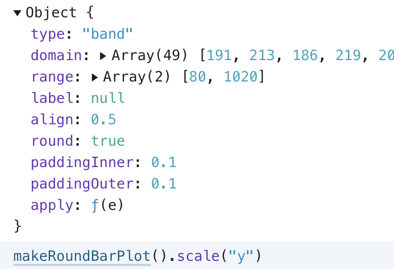 I might be missing something, but it seems that there's no simple way to get the bandwidth used by a band scale. I'm trying to align additional elements to the center of each band, and currently it involves more math than when a band scale is used in D3.