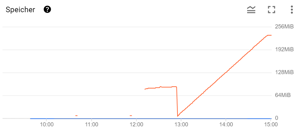 The memory starts at ~5MB but over time it raises and never drop back down.