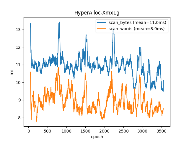 blackenDirtyCardRootsstage for HyperAlloc running withOnlyIncrementallycollection policy and different heap sizes.