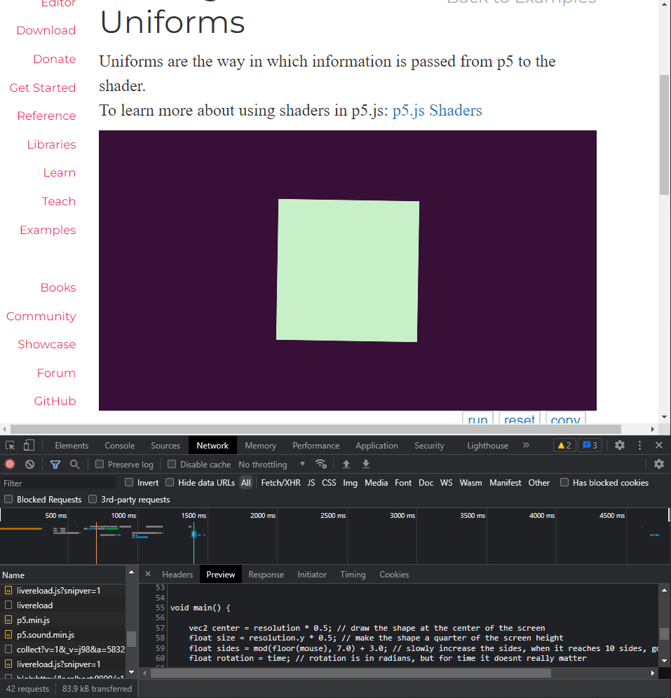 @aceslowman I think I figured out what's happening with the center item in the shader uniforms example. I must have been looking at the example on my laptop, which has a 2x retina display. I was able to get the object to center by changing the code to: If you make this change, I think we'll be ready to merge from there. |