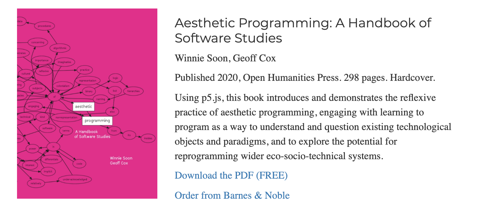 Changes: Added title, discussion, links, image for book, etc. information for Aesthetic programming in all language files