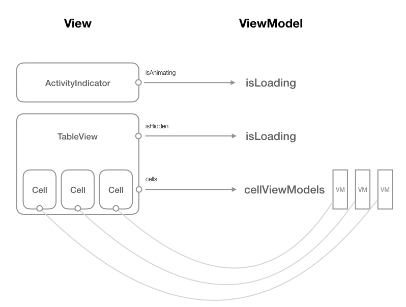 View์์ ViewModel์ ๋ฐ์ธ๋ฉ Closure๋ค์ ๊ตฌํํด์ค์ผ๋ก์จ View์ ๊ฐฑ์ ์ ๋ํ ์ฝ๋๋ฅผ ์ ์ํด์ฃผ๊ณ ๊ฐ์ ๋ณํ์ ๋ฐ๋ฅธ ๋ทฐ ๊ฐฑ์ ์ ํธ์ถํ๋ ํ์๋ ViewModel์ ์์นํ๊ฒ ๋ฉ๋๋ค. ์ฆ ๋ฐ์ดํฐ์ ๋ฐ๋ผ ๋ทฐ์ ๊ฐฑ์ ์ ๋ช ๋ นํ๋ ํ์๋ ViewModel์์ ์ด๋ฃจ์ด์ง๊ฒ ๋ฉ๋๋ค.
