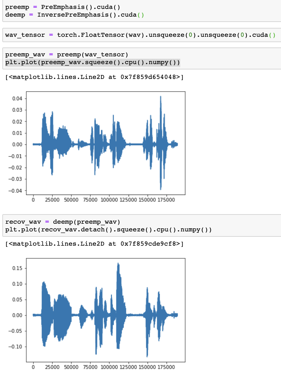 In my speech enhancement case, that model usually generate high frequency noises without preemphasis. With this method, it brings many helps to enhance enhancement quality. But, to use of it on training models, it should be implemented with pytorch.