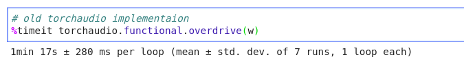Thanks for the update. So my understanding is that the speed is comparable to sox implementation. Can you compare the same |