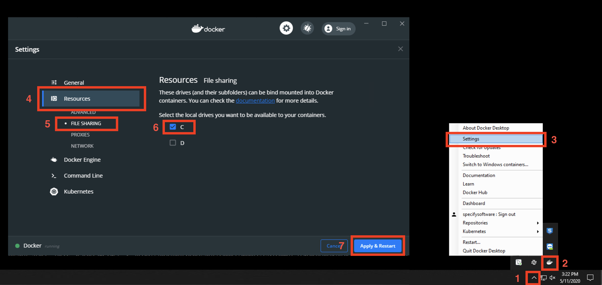 and wait for Docker to fully reboot (as shown by the indicator in the lower-left corner of the window).