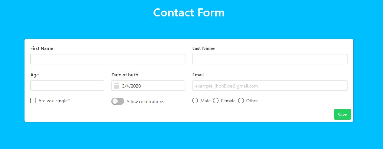 options: [{ name: "Male" }, { name: "Female" }, { name: "Other" }]