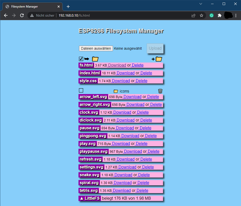 - Here you can upload all files located in the folder "data". Please make sure all icons stay in the folder "icons" also on the webserver.