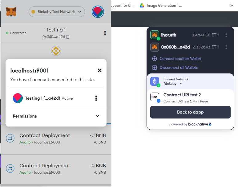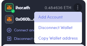 As you can see I only have ...a42d wallet connected in metamask and have since disconnected ihor.eth yet I can select it in the Account Center.