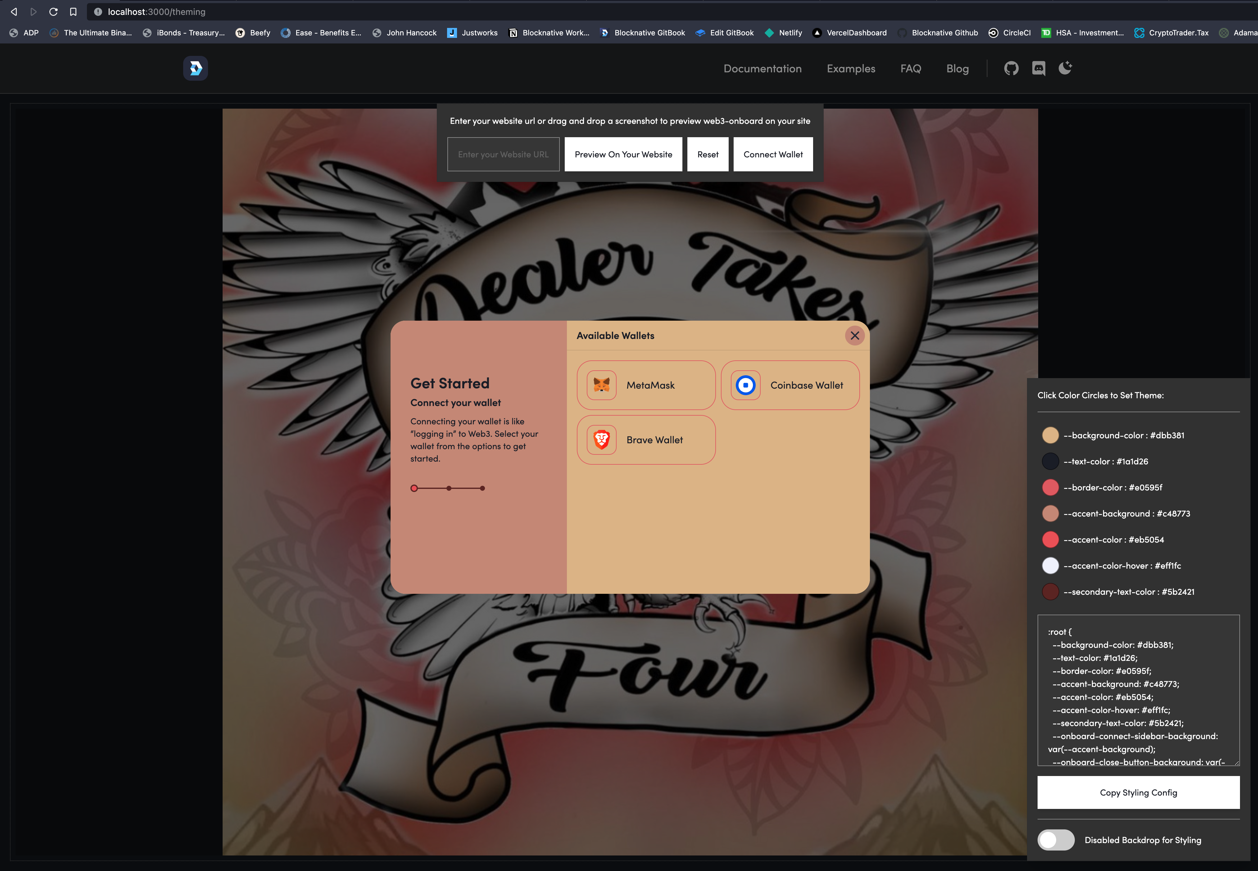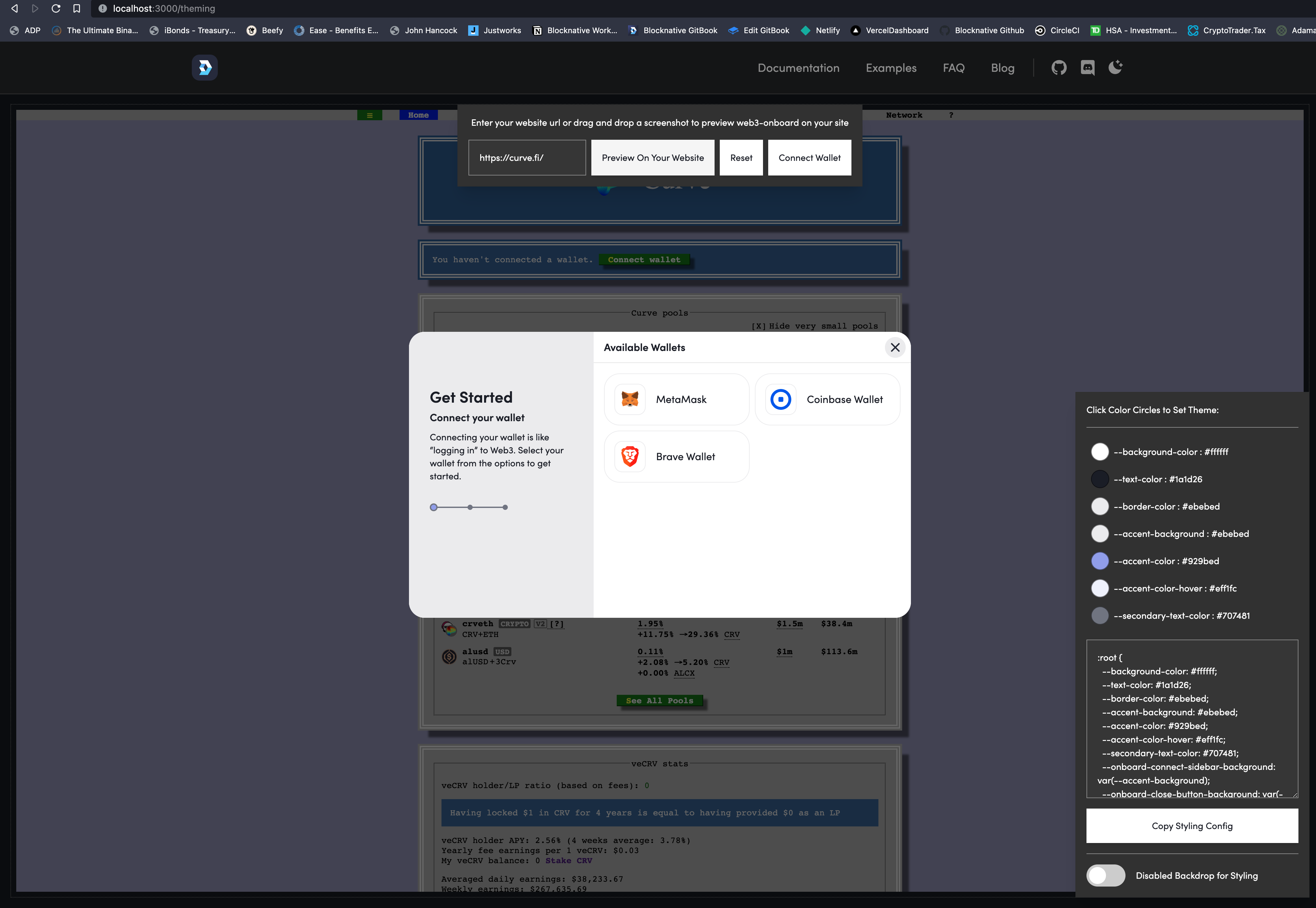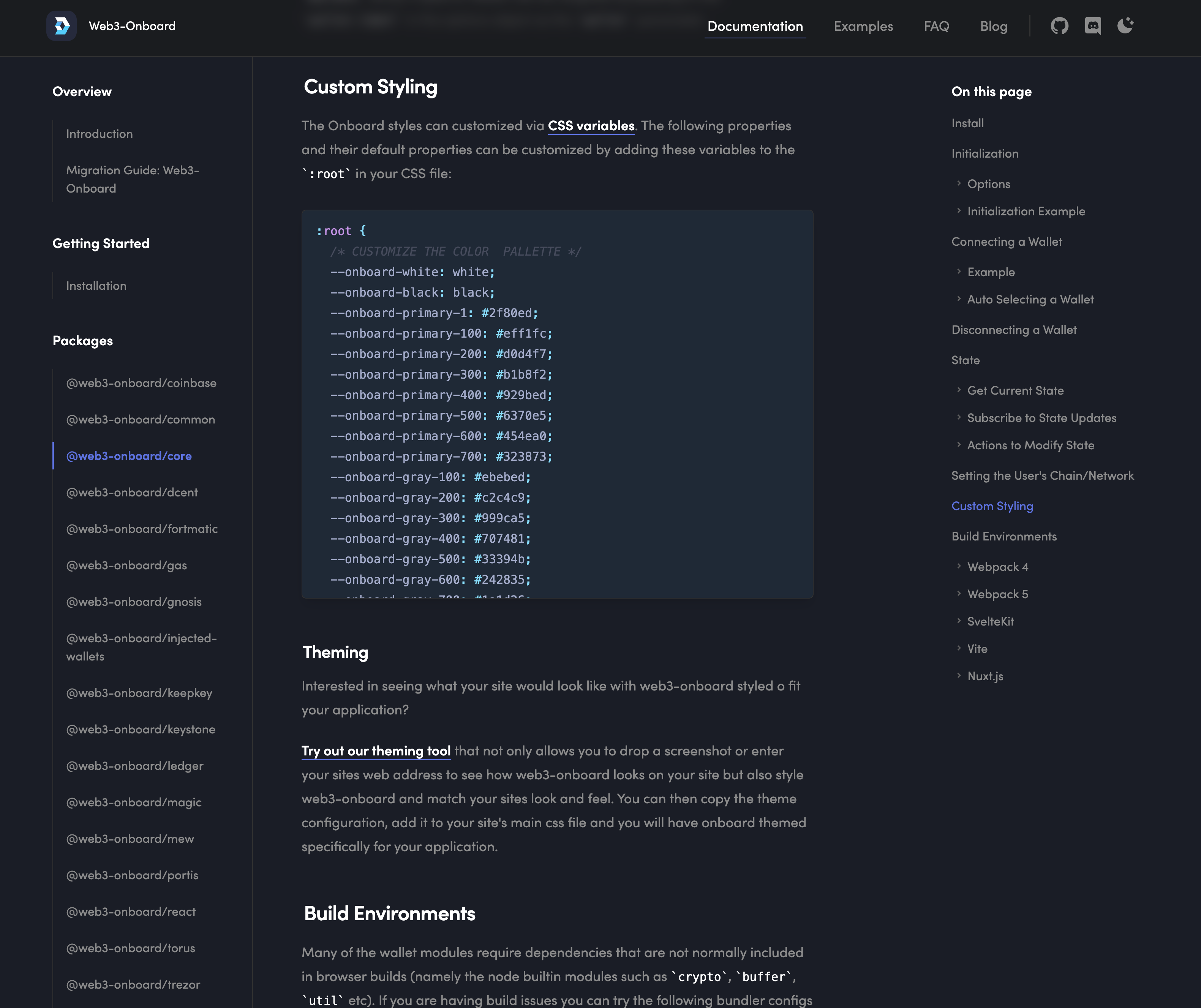 * Update route name + formatting * run yarn format * add named layout for homepage and apply * Add packags * Use builtin navbar * Fix layout * remove comment * add head info for homepage layout * rename index file to use homepage layout * remove max-width override We don't want all pages to have max-width of 100%. This is only relevant for the home page and this is a reason why we're using different layouts. We want to keep things separate. * add NavBar import back. * move low-level components to /base folder and update imports * remove content-max-width check We're using two different layouts. We don't need this fix for homepage on the docs layout. Please add homepage relevant changes to the relevant layout. * import normalize into homepage layout * add media queries to themes graphic - rename files - update import names * remove height and width attributes from svgs * add responsive styles for features graphics - rename svg files+ imports - hide scroll bars on scroll containers * add ScrollContainer component - create new base component - use ScrollContainer in appropriate sections * update favicon * add more props to Flexbox component * add link urls and use unplugin icons in Footer * Adds back tabs for installation + fixes fonts * add wallet connect image + remove examples link * add kit-docs sidebar to homepage layout * Create [...3]migration-guide.md migrated the migration guide * add slot to TextBlock component remove placeholder anchor element * update Button component - add link + icon styles - use anchor element - tweak button style * update Button usage instances - add section id * add hover transitions to social links * add learn more and view demo links * remove height and width from svg graphic * add spacer div * remove faux code block tabs * remove Blocknative text from nav * replace Blocknative nav text * add local kit-docs theme variables - override --kd-font-family-sans - override --kd-color-gray-body * update layouts - use local theme variables file - don't import vars.css or fonts.css - remove Button import - update brand color var * update testimonials section - add new graphic - simplify styles * add getting started markdown guide * update getting started section - import md file to access CodeFence features - use .prose text styling from tailwind - remove unused css - remove unused markup * remove empty spaces from code * move font-face styles - move @font-face declarations to fonts.css - update layout imports * add line numbers to code fence * remove old code snippets + add tabs to all packages * move app.css import to top of files - This is currently causing conflicts. There are some yet to be resolved issues with our tailwind install. It seems like we're double-importing the Tailwind directives. Once in app.css from us and again in theme.css from kit-docs. - This is a temp fix * add max-width styles - remove tailwind width classes. Not working as expected. * add github social link to layouts * move Tabs component to global components folder - this makes it so they're imported into every single Markdown file - move components to src/kit-docs - remove imports from components/index.ts - remove imports from md files * tweak Tabs design * update theming section - add updated graphic - add theming-code CodeFence * update frameworks section - add install-code CodeFence * update installation md - add white space - remove extra spaces * add the same nav links on both layouts * add simple faq page * update top nav - add faq links - add discord links - add prerender to homepage * update footer - add youtube link - spacing tweaks * Prepare repo for static deployment + formating * add last marketing pixel * remove console log * add current branch to workflow trigger for testing * add Global site tag * update tracking codes * Create [...4]resources * added resource links * updated titles * added supported networks list * added init options link * create faq.md * added link to supported chains docs * Re-org/re-name sidebar items * fixed typo * intro final draft * updated title & intro * core-updates * Move examples to separate page * added natively supported wallets * Add react & svelte connect wallet example * Fix build error * Change sidebar title + fix connect wallet example * modify workflow to allow manual trigger * update workflow * update workflow * update workflow - add back current branch * change which adapter is used * update workflow for debugging * update workflow path to built files * update workflow path to built files * remove hubspot embed code * fix some broken links * update landing page graphics - center wallets row on larger screens * add responsive code for themes graphic * replace connect wallet image * change FAQ route * edit FAQ markdown - add correct link - remove old faq.md * update images for hero section - update hero-img.svg - remove unused HeroBackground.svelte file - small style updates to Button and HeroSection * update theming section graphics - add updated wallet-row graphic - remove unused svg components - style tweaks to theming section * update wallets graphic - add updated wallet-row svg - update imports - remove unused components * fix svgs not displaying correctly in Safari * update connect modal svg * update blog link * link added to faq * customization file added * fixed link & formatting * added hint/info styling and customization * Update onboard graphics - fixed typo * add zapper to users graphics * remove unused svg * svg updates - update powered by badge code - remove unused svgs * Documentation - Theming Customizer (#1275) * Update docs/src/lib/components/HeroSection.svelte * Update docs/src/routes/docs/[...2]getting-started/[...2]customization.md * Update docs/src/routes/docs/[...2]getting-started/[...2]customization.md * change description on homepage * Bump internal version, add enter submit for ifram url, reset btn closes onboard and resets mapping (#1278) * remove unused import * vercel adapter fix * rename /theming to /the