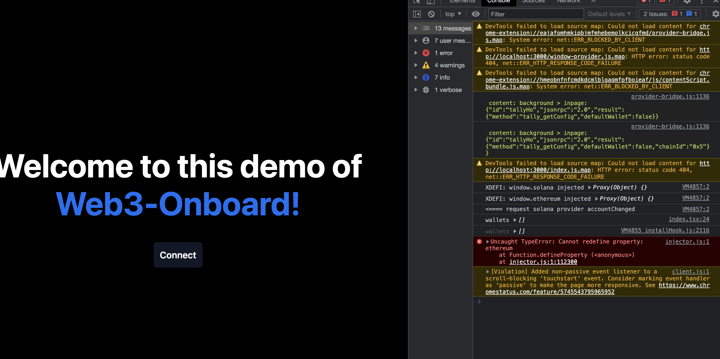 (Please ignore the typerror- it was coming from my frontier wallet extension)