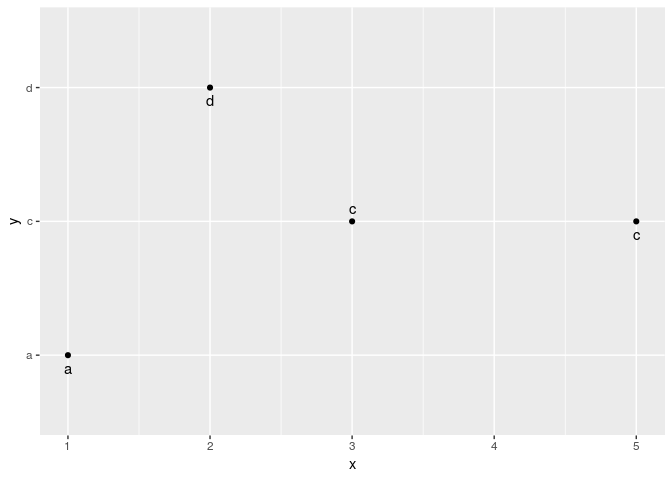 geom_text(aes(label = y), nudge_y = c(-0.1, 0.1, -0.1, -0.1))