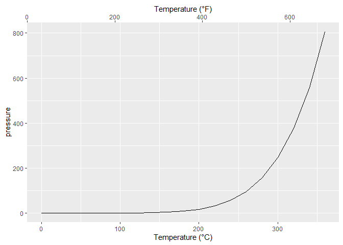 p <- ggplot(pressure, aes(temperature, pressure)) + geom_line() +