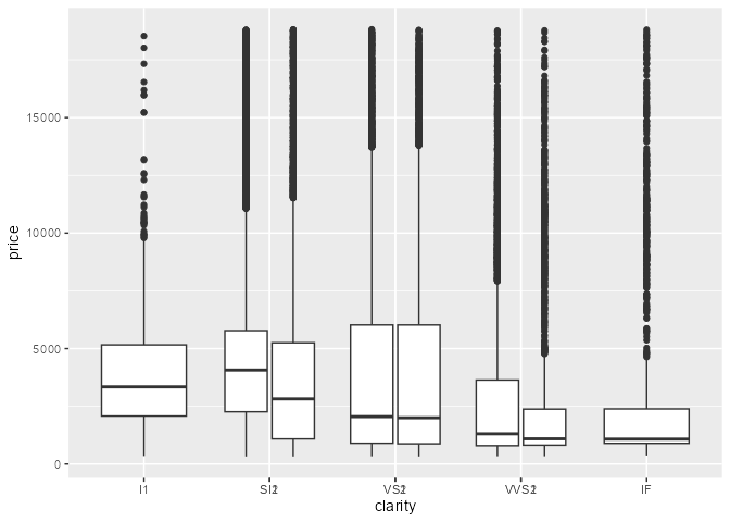 If two limits share a position, position adjustments treat these like a single position (invoking dodging in the example) but axis guides show duplicated labels.
