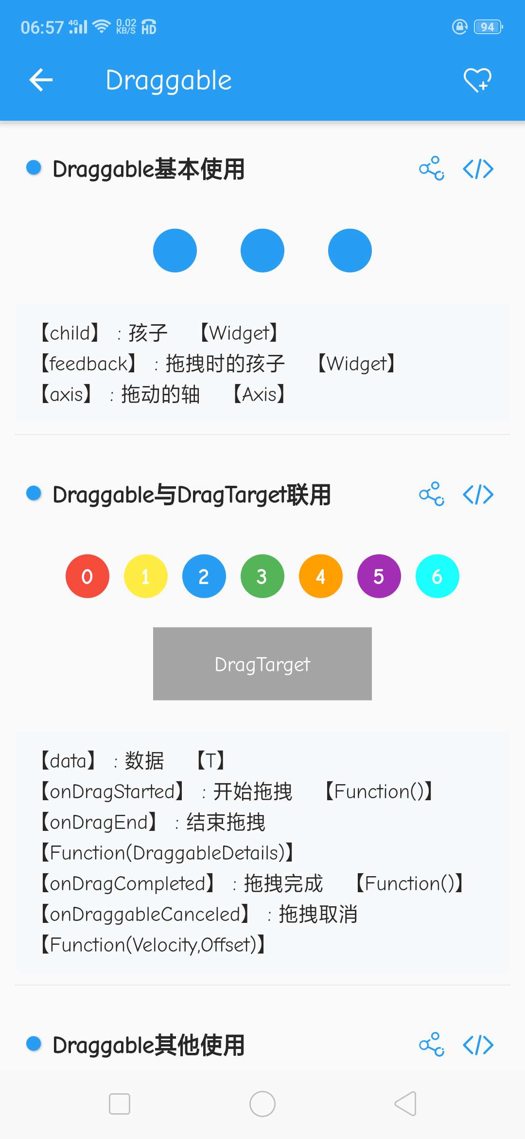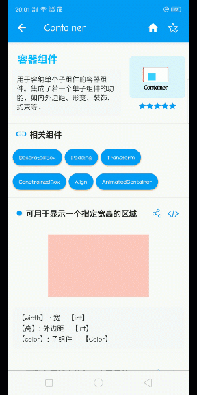 213个组件全部都有详情页。对于重要的组件会详细展现 一般都会有某个演示对应的组件和属性,尽量做到细致,如果有需要补充,欢迎联系我。最重要的是: 所有的演示展现都是Flutter的组件形成的,而非图片,这就意味着可操作性更高。