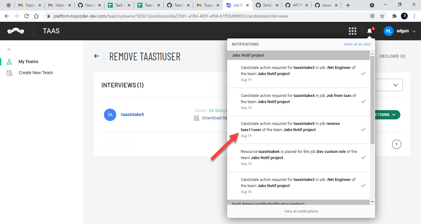 Also noted for the interviews which completed on 18th, no ''Post interview action reminder'' emails have been sent yet. Ex- https://platform.topcoder-dev.com/taas/myteams/18361/positions/17a74bde-a156-4c66-8fcf-557e2c8e19e1/candidates/interviews