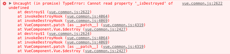 the console throws an error. I'm using vue-router so when I try to change the url the following error occours: