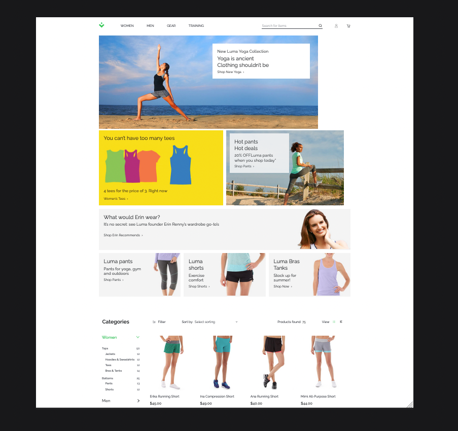 You can compare with https://magento2-instance.vuestorefront.io/women.html if you like