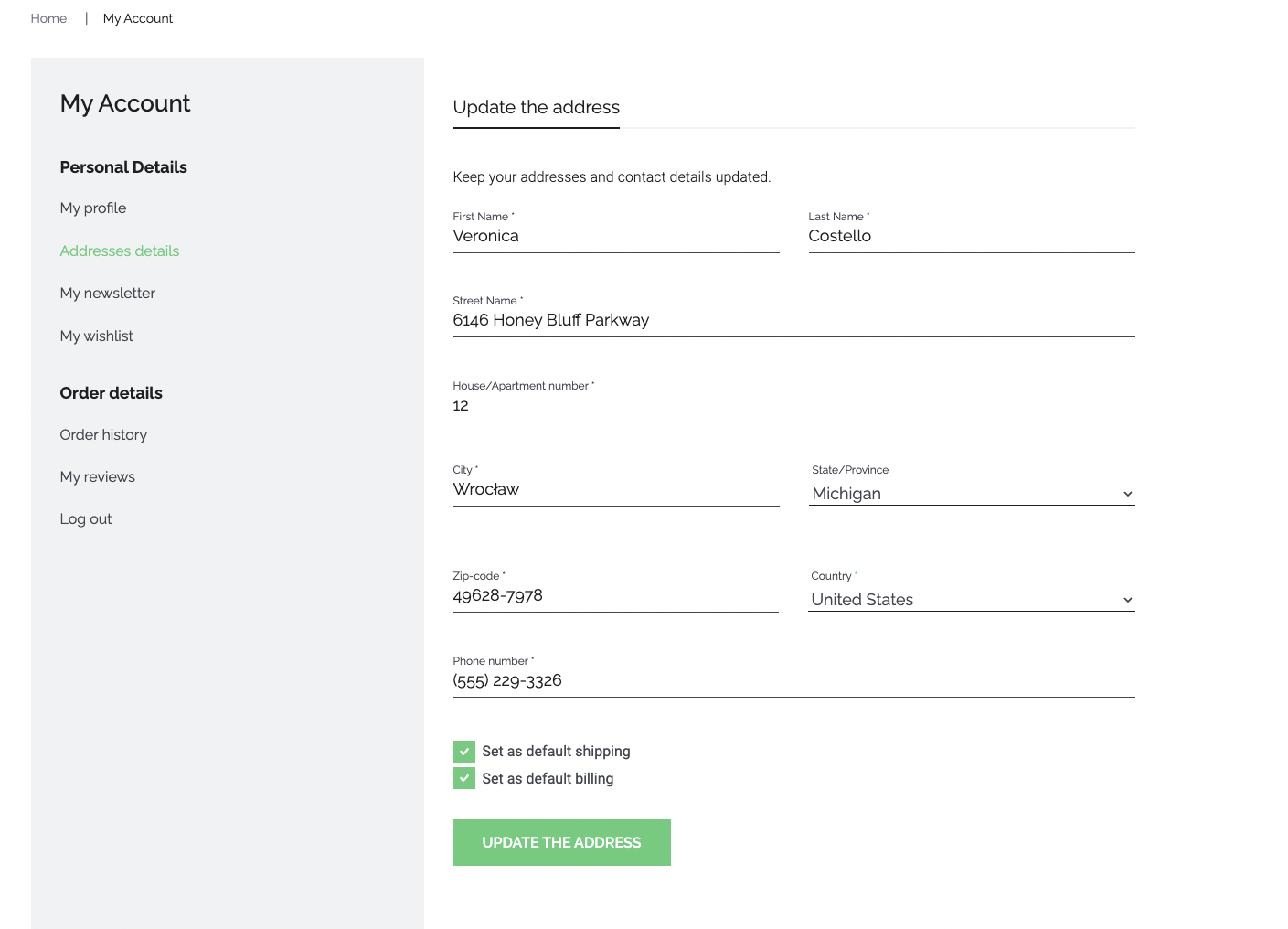 Update address view