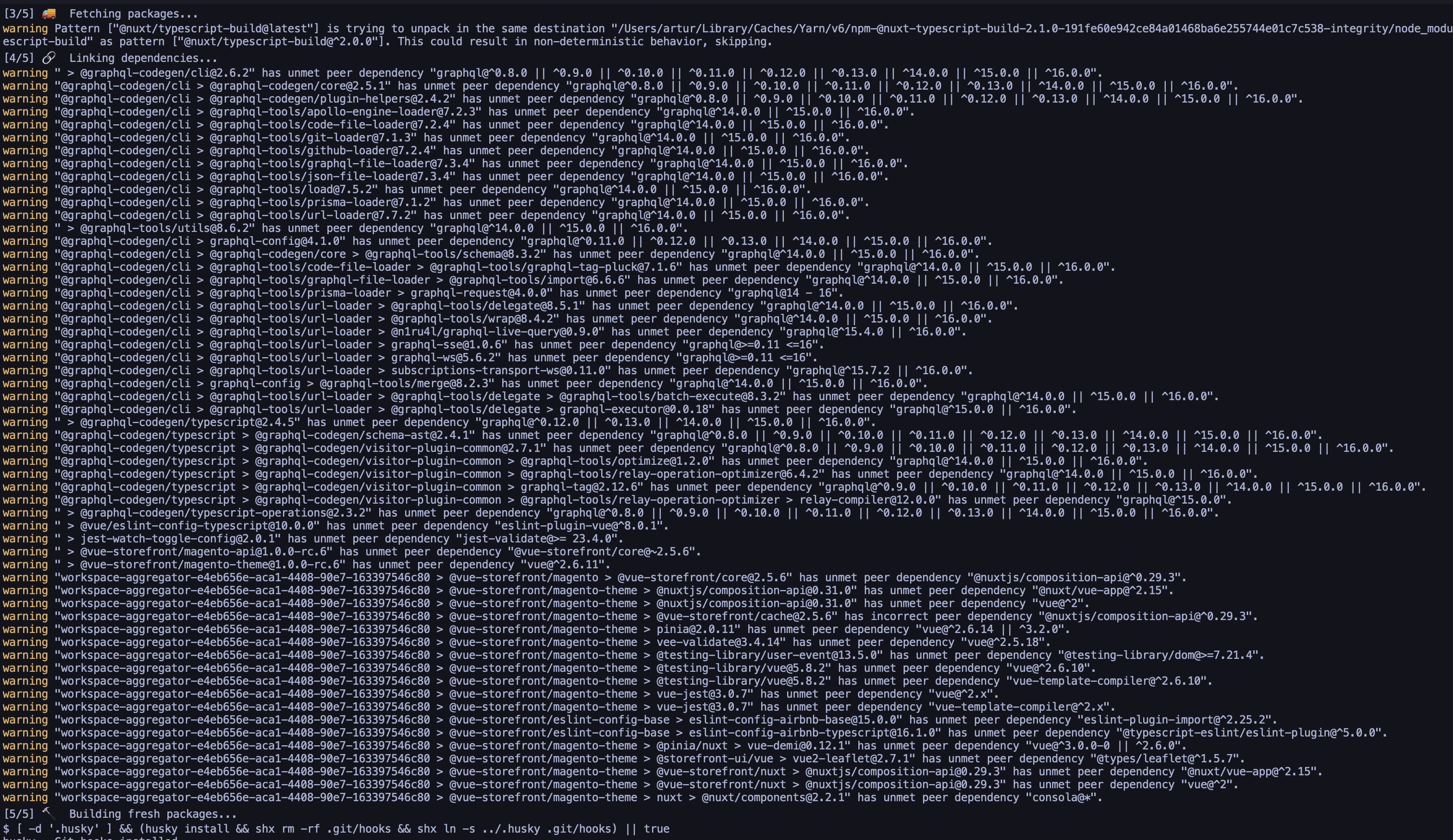 * chore: add graphql peer dependency restore newer graphql version * chore: add vue as hard dependency this gives us direct control over the vue version rather than relying on whatever a subdependency installs * chore: fix eslint-config-typescript not in internal eslint pkg * chore: fix @nuxt/typescript-build conflict between 'latest' & '2.1.0'