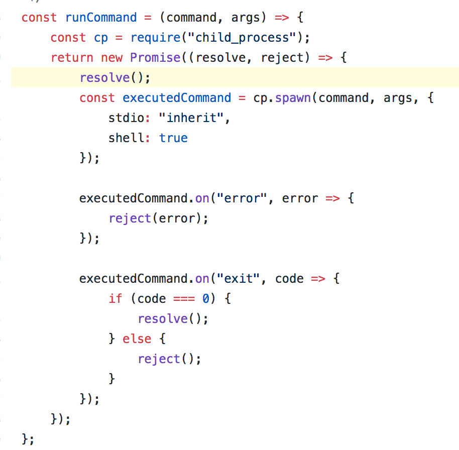 In /bin/prompt-command.js#L11, there is a resolve at top of a Promise, which would cause then to execute in a synchronous manner. In this case, the package would be required before it's installed.